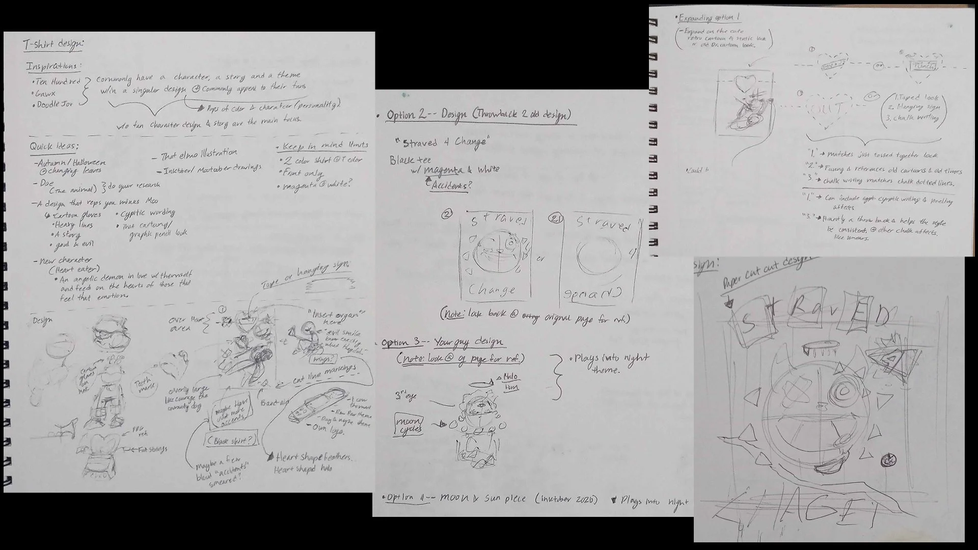 A few sketches and time lapse that went into the making of the apparel designs. Originally for an Art Challenge by